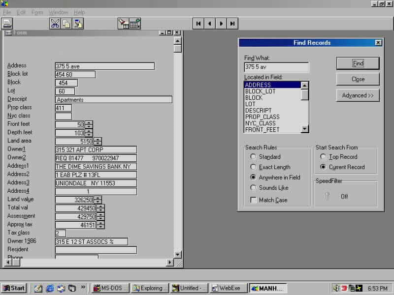 The Manhattan Picture Database CD-ROM is a project still being created. Currently, the cd contains over 10,000 photographs covering an estimated 31,000 properties in Manhattan. Coverage presently consists of buildings along the main avenues and on the primary cross towns streets up to 59 Street. Side streets and smaller streets has minimal coverage. The screenshot of the map (item 4 below) provides you with some idea of what is covered. In addition to the thousands of photographs, this remarkable cd-rom also contains a text database covering every single property in Manhattan. If that was not enough, the Manhattan Picture Database CD-Rom also contains historic information including a complete land/map block and lot book of Manhattan covering every property as it was in 1914. The cd also contains a number of "actuallities" or early movies of Manhattan which were shot between 1898 and 1905. This CD is truly fascinating.
